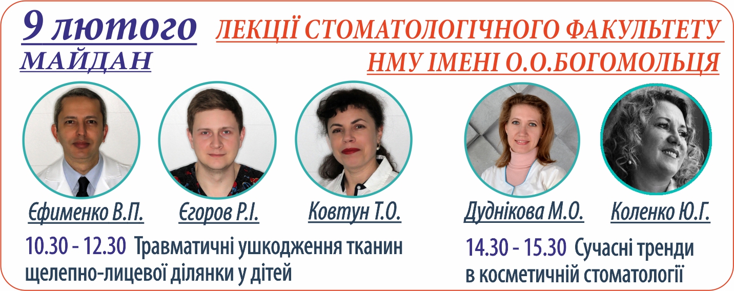 - Єфименко Владислав Петрович, к.мед.н, доцент кафедри хірургічної стоматології та щелепко-лицевої хірургії дитячого віку НМУ імені О.О.Богомольця