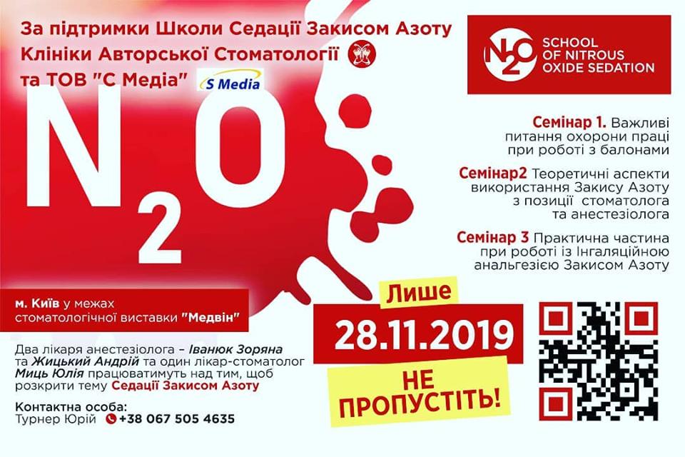 Дата проведення 28.11.2019 Теоретичні та практичні засади використання закису азоту у стоматології - 28.11.19 Детальніша інформація та реквізити для оплати - на нашому сайті www.n2o-system.com