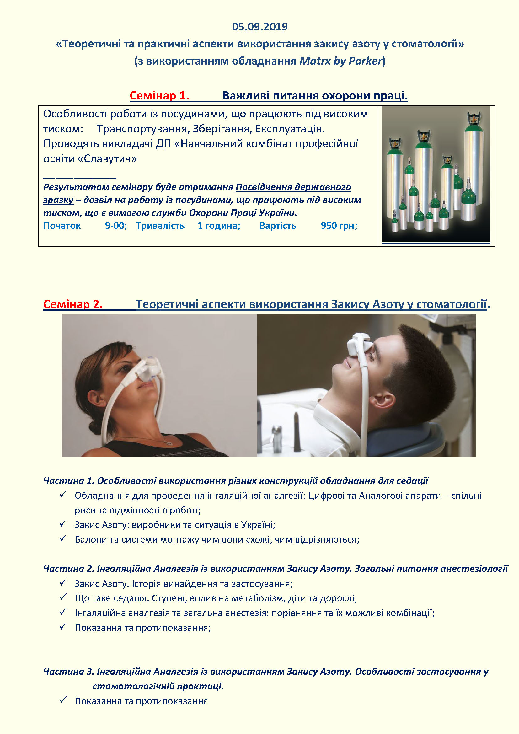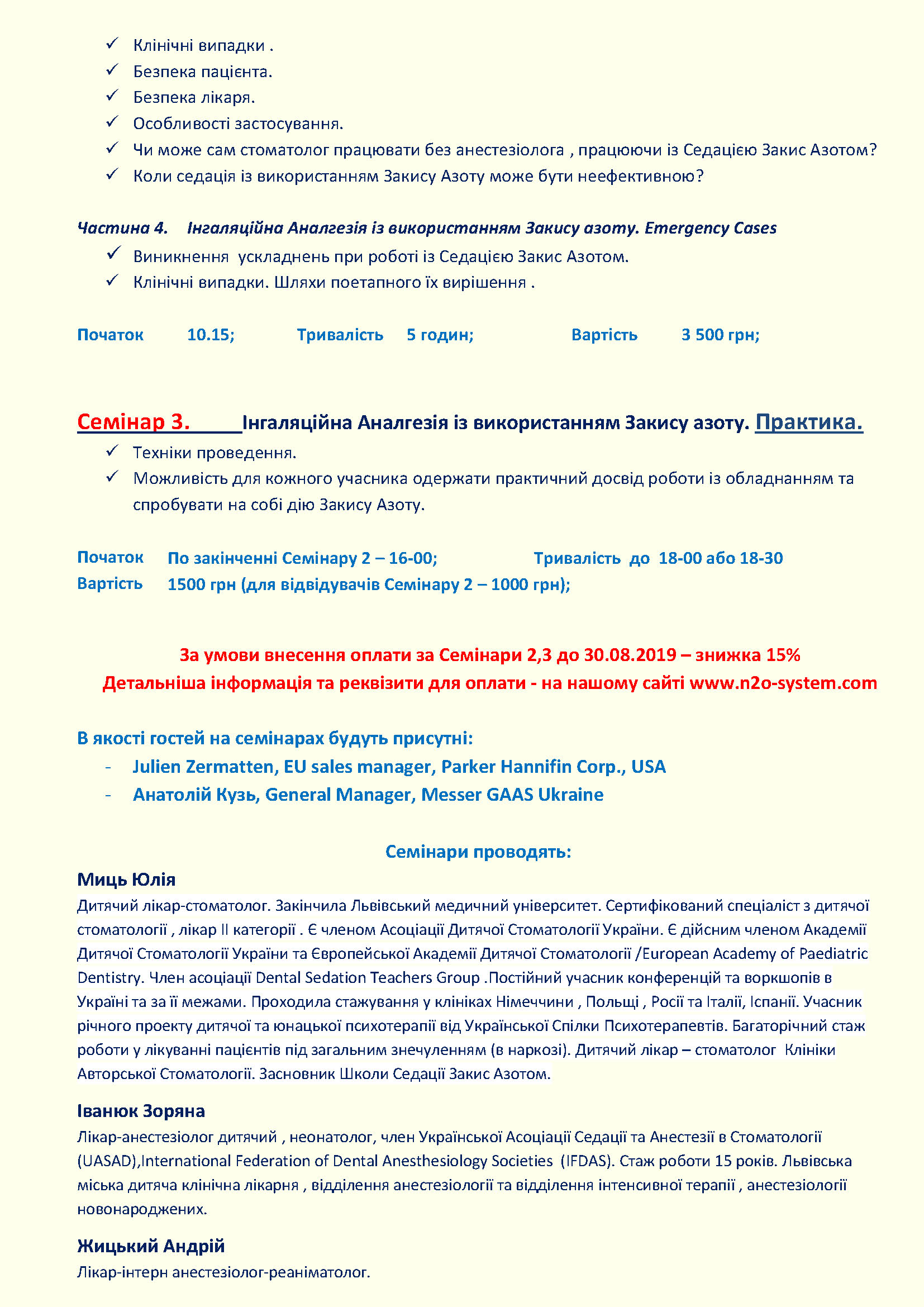 Дата проведення 5.09.19 Теоретичні та практичні засади використання закису азоту у стоматології КОНФЕРЕНЦ-ЗАЛ № 1 Детальніша інформація та реквізити для оплати - на нашому сайті www.n2o-system.com