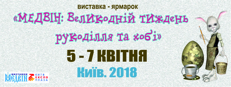 Яскраві фарби, театралізовані виступи, великодні сувеніри, подарунки - традиційні атрибути великодніх гулянь . І атмосфера рукодільного Медвіну нікого не залишить байдужим , допоможе підготуватись до світлих свят в атмосфері творчості і натхнення! - Дорогі друзі! Запрошуємо відвідати ХХХІI СПЕЦІАЛІЗОВАНУ РУКОДІЛЬНУ ВИСТАВКУ МЕДВІН: