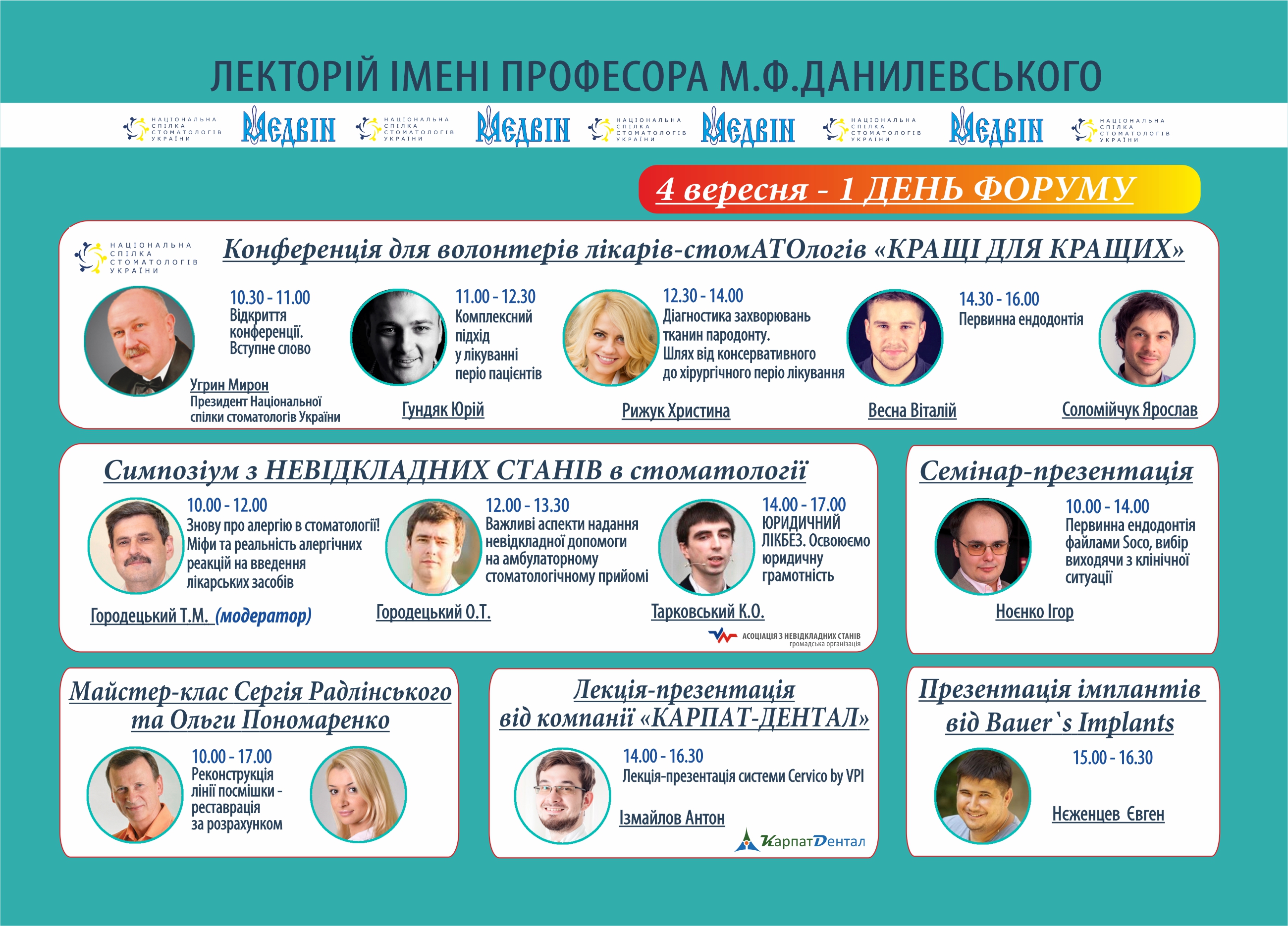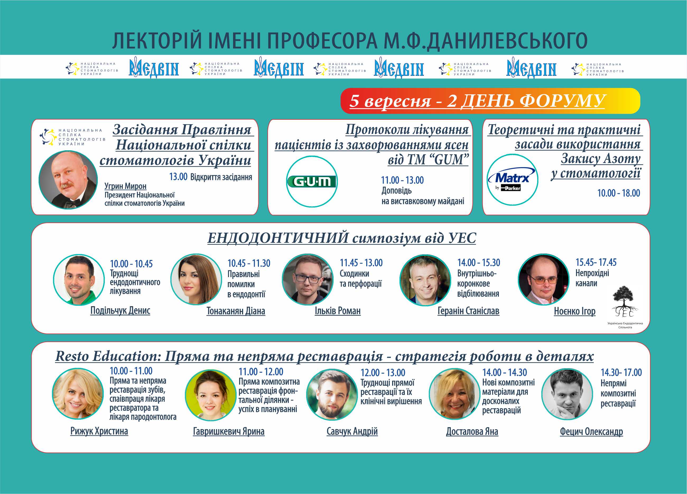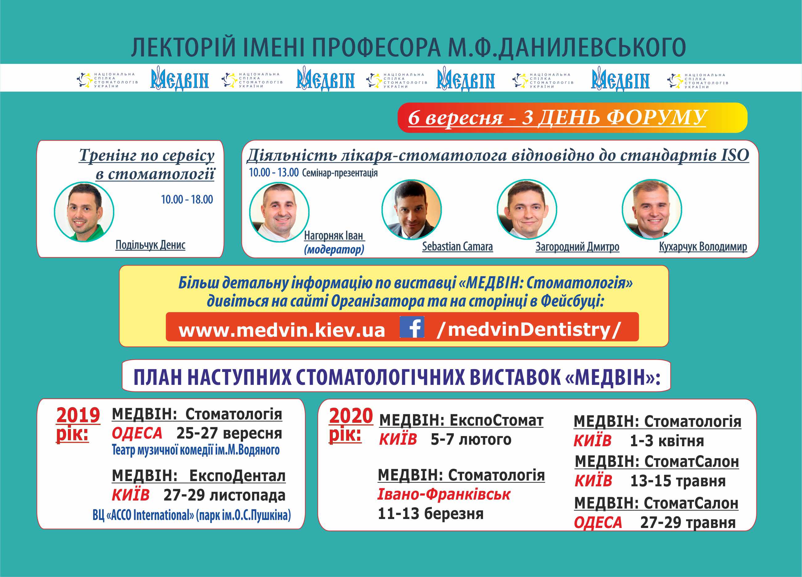 - Всі виставки супроводжуються Лекторіями для практичного лікаря імені професора М.Ф.Данилевського, організованими Національною спілкою стоматологів України. А, також, семінарами та презентаціями від учасників виставки.
