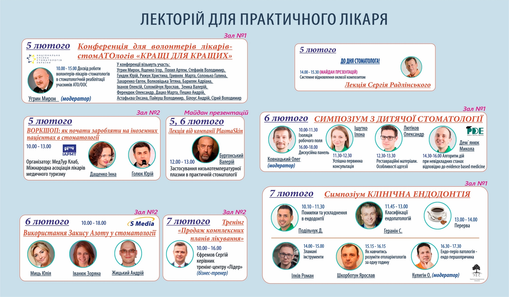 - Програма Лекторію для практичного лікаря імені професора М.Ф.Данилевського, який проводить Національна спілка стоматологів України разом з виставковою компанією МЕДВІН вже формується. На сьогоднішній день заявлені наступні заходи: