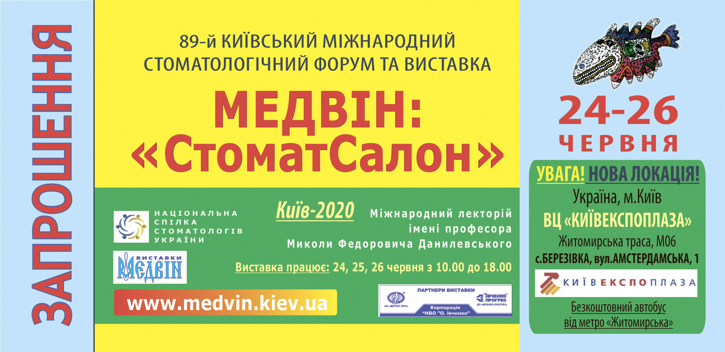 - Звертаємо Вашу увагу, що наша наступна виставка в Києві – "МЕДВІН: СтоматСалон" цього разу пройде 24-26 червня на новій локації КиївЕкспоПлази на Житомирській трасі, с. Березівка, вул. Амстердамська, 1.