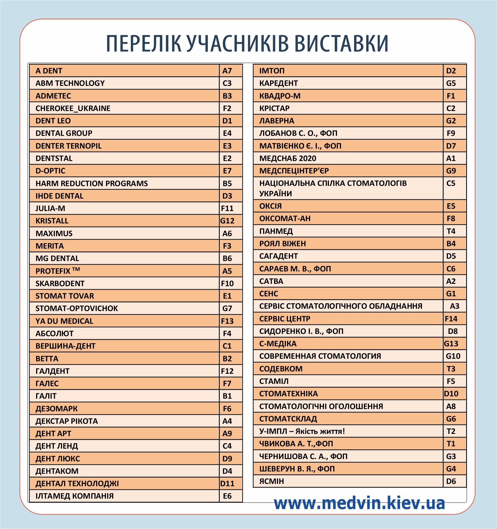Шановні друзі та колеги! Запрошуємо долучатись до нашого заходу - 92-ої міжнародної спеціалізованої виставки "МЕДВІН: ЕкспоСтомат" та до святкування Всесвітнього Дня Стоматолога! - що пройдуть 9-11 лютого 2021 року у виставковому центрі «КиївЕкспоПлаза» (Київська обл., Макарівський район, село Березівка).