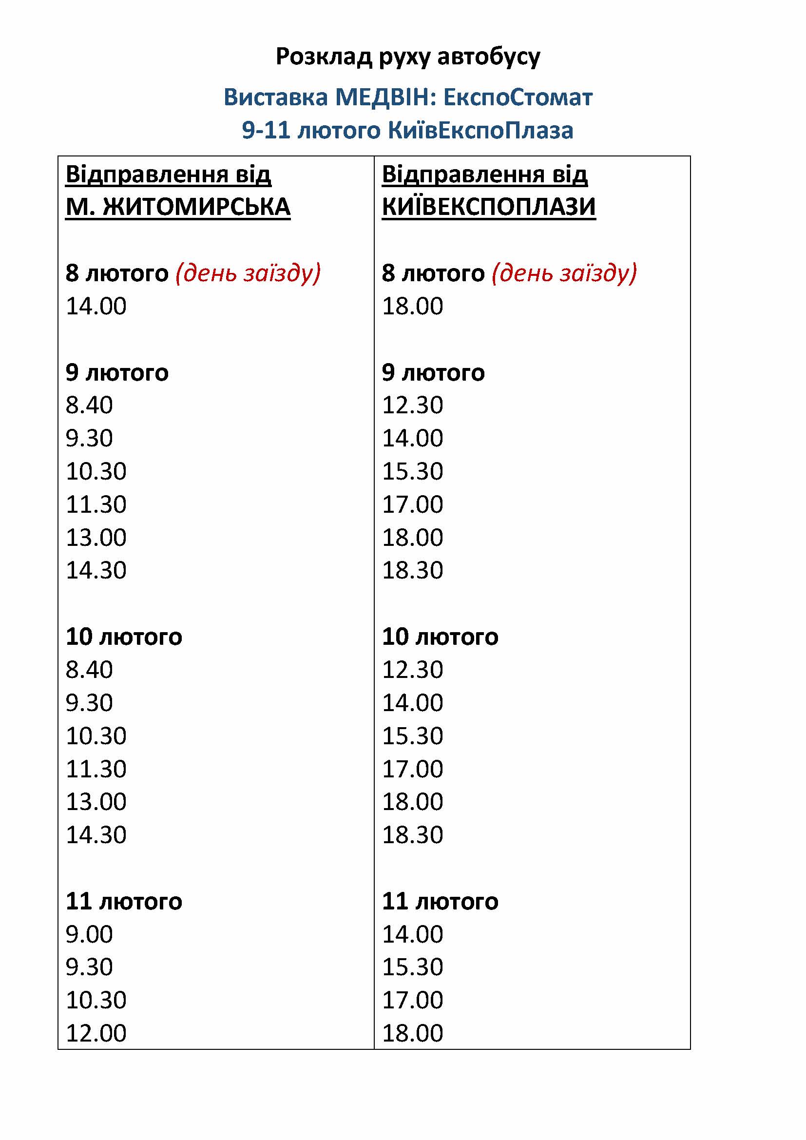 БЕЗКОШТОВНИЙ ТРАНСФЕР ВІД МЕТРО ЖИТОМИРСЬКА (РОЗКЛАД АВТОБУСІВ) -