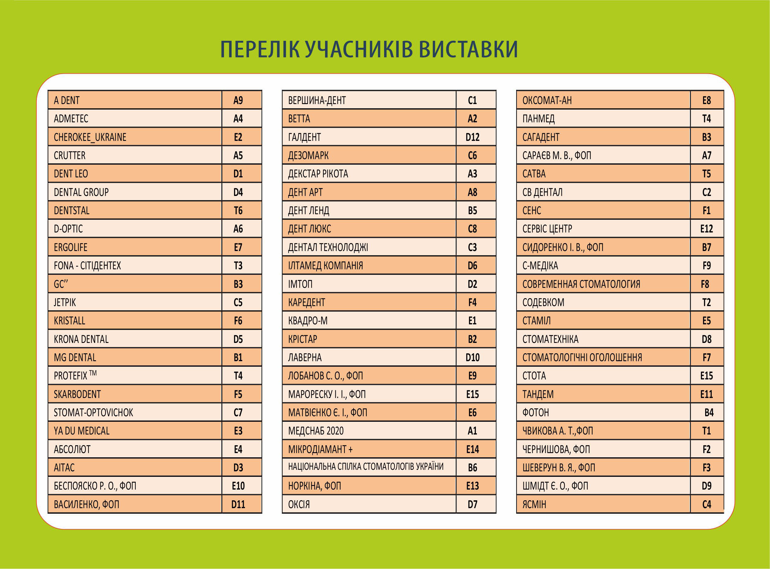 - організованими Національною спілкою стоматологів України. А, також, семінарами та презентаціями від учасників виставки.