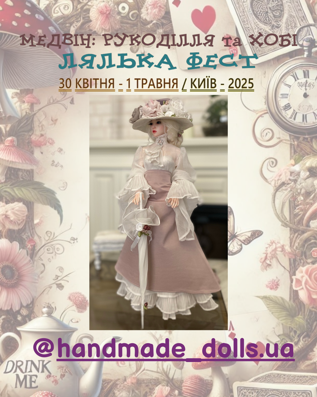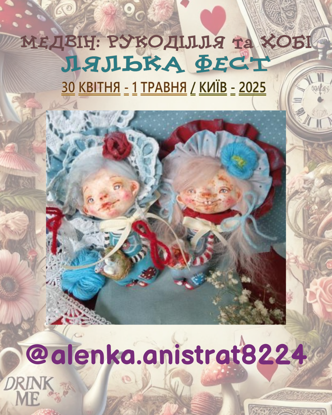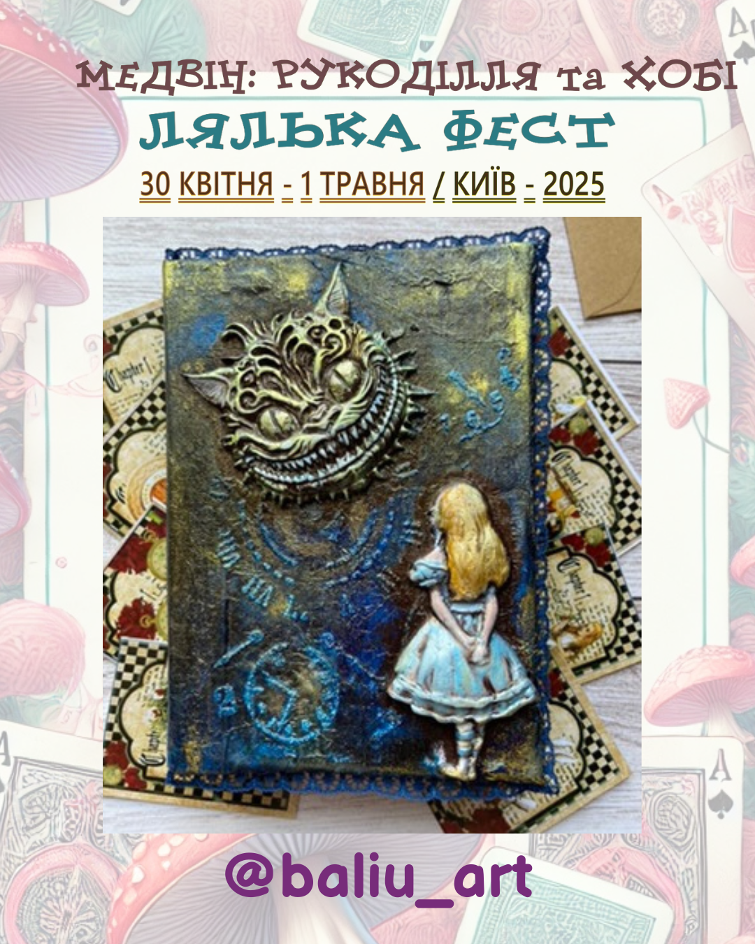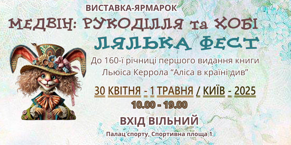Раді оголосити про весняний захід Медвін: Рукоділля та хобі. Мотивом виставки обрано неймовірні пригоди дівчинки Аліси, героїні диво-казки Льюіса Керрола «Аліса в країні див»