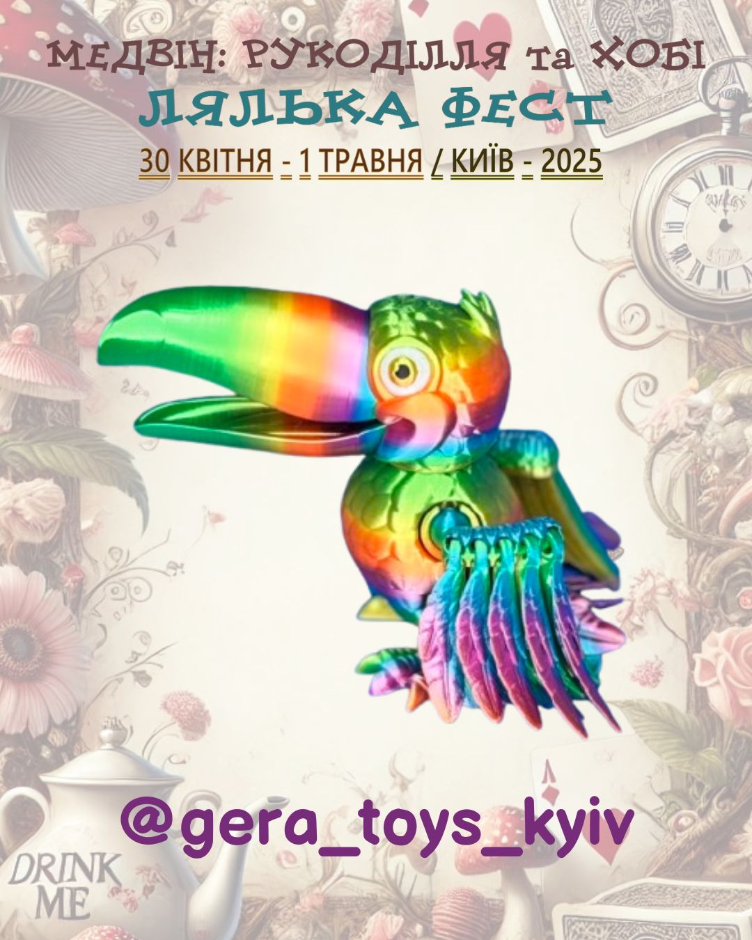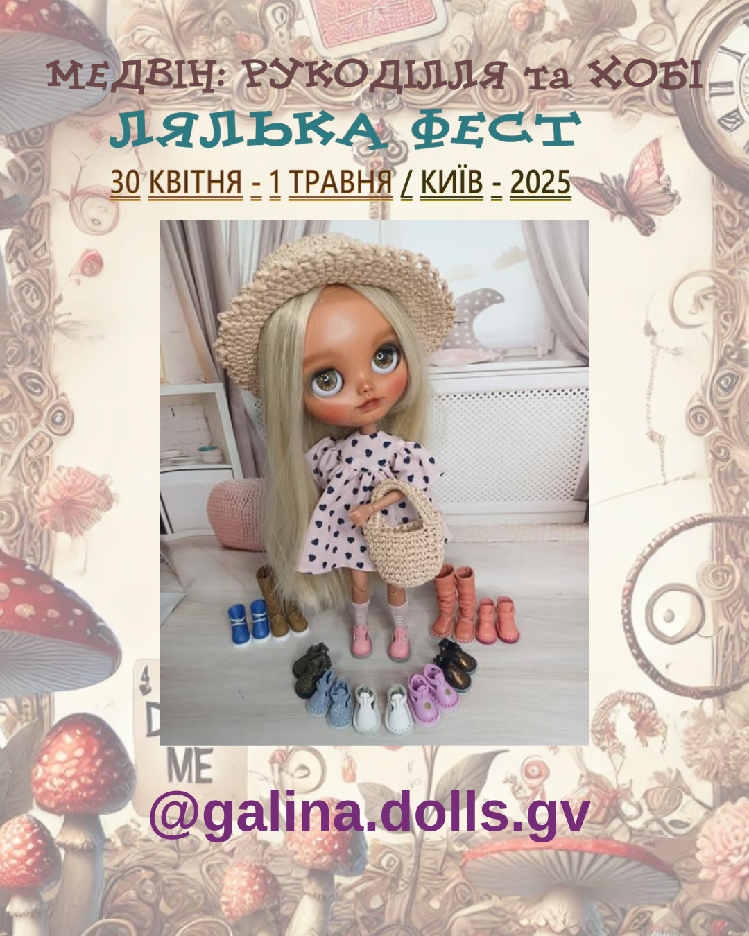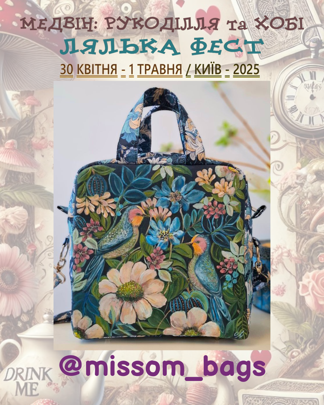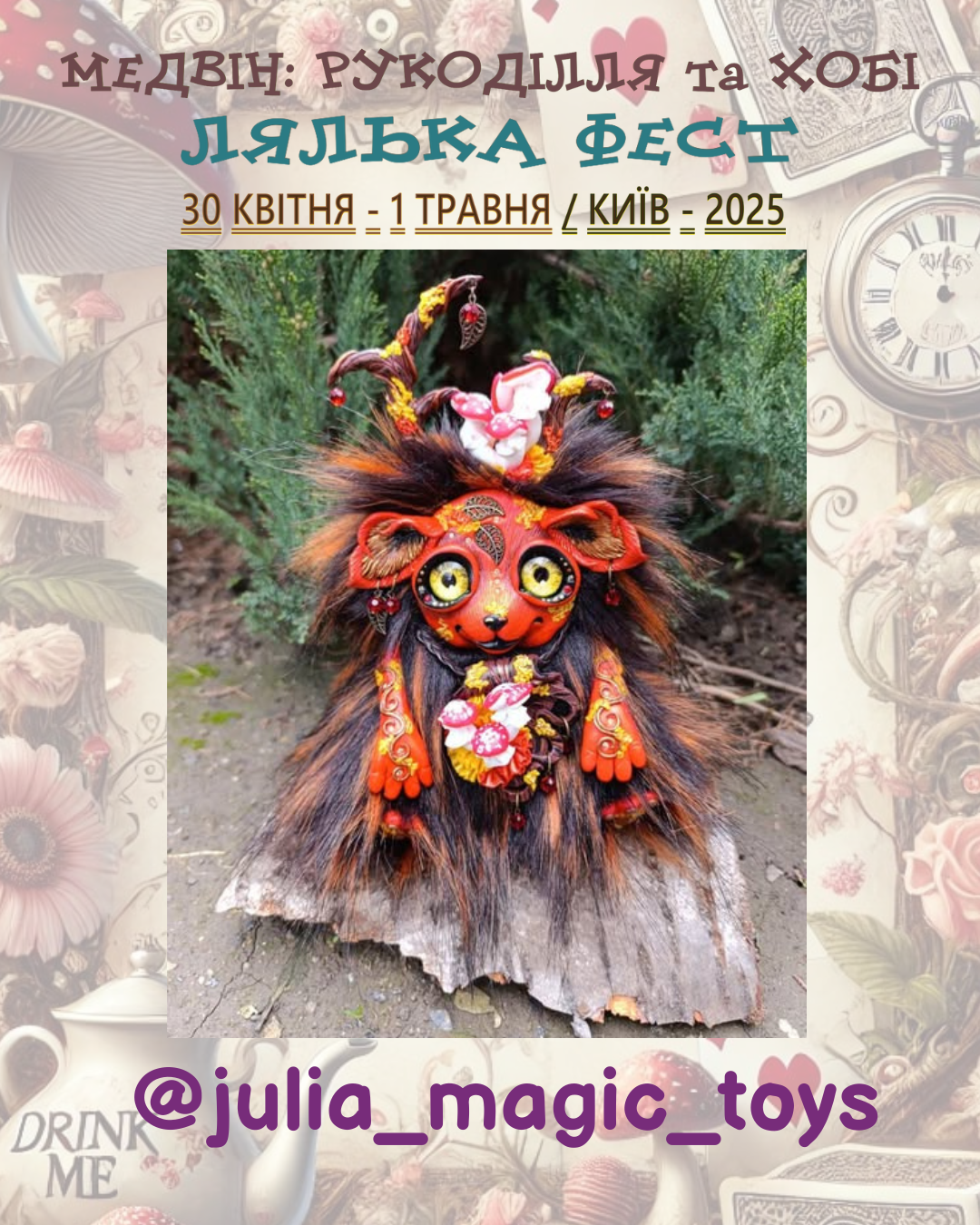 Раді оголосити про весняний захід Медвін: Рукоділля та хобі. Мотивом виставки обрано неймовірні пригоди дівчинки Аліси, героїні диво-казки Льюіса Керрола «Аліса в країні див»