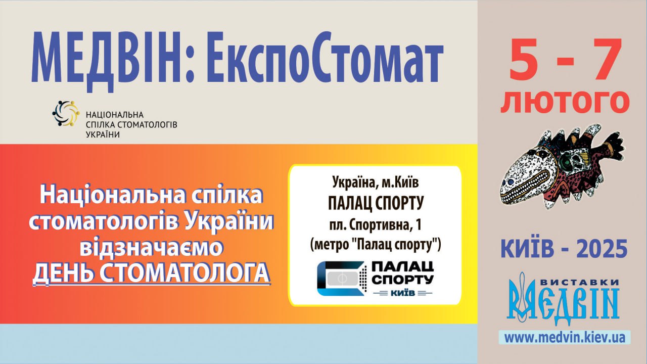 Шановні друзі та колеги! Запрошуємо долучатись до нашого заходу - 108-ої міжнародної спеціалізованої виставки "МЕДВІН: ЕкспоСтомат" та до святкування Всесвітнього Дня Стоматолога! - що пройдуть 5-7 лютого 2025 року у Палаці Спорту (Київ, Спортивна площа,1).